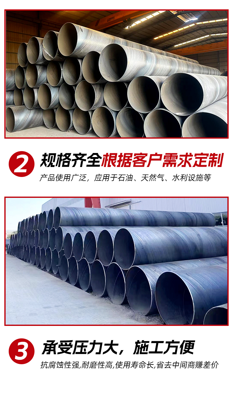 2. 標(biāo)準(zhǔn):螺旋鋼管的標(biāo)準(zhǔn)包括國家標(biāo)準(zhǔn)(GB)和行業(yè)標(biāo)準(zhǔn)(SY),如GB/T 9711-2011《石油天然氣工業(yè) 輸送用鋼管》、GB/T 3091-2015《低壓流體輸送用焊接鋼管》等。